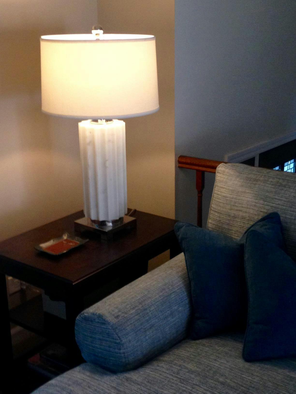 White Linen Shade: Softly diffuses light for a warm and inviting atmosphere.