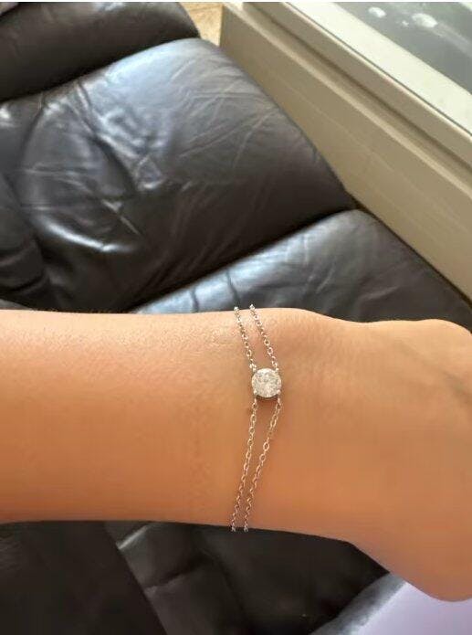 This 925 sterling silver bracelet features a dazzling 6.5mm D-color VVS1 moissanite as its centerpiece, set within a stylish double chain charm design. Lightweight and adjustable, it offers a perfect fit for women, making it ideal for weddings, engagements, birthdays, or as a luxurious gift. Certified and tested, this moissanite bracelet delivers brilliant sparkle with enduring quality.