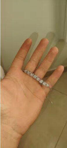 The mix of 5 mm, 3.5 mm and 2.5 mm stones creates a layered sparkle that looks clear and bright in any light. The adjustable chain makes it easy to fit most wrists, and the silver finish keeps a clean shine with minimal care. It works for birthdays, anniversaries, parties and everyday outfits while offering strong value for a premium moissanite piece.