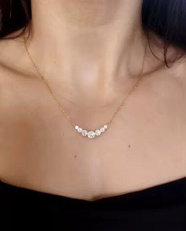 This round-cut moissanite pendant brings a clear, bright shine with a clean silver finish. The simple U-Smile design gives it an elegant look that works well for daily outfits and special occasions without feeling overstated.
