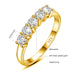 This 5-stone moissanite ring is a stylish symbol of love and commitment. Lightweight at approximately 2.8g, it is comfortable for everyday wear while remaining a sparkling statement piece. With options for rose gold, yellow gold, or white gold plating, it is fully customizable to match personal preferences or special occasions.