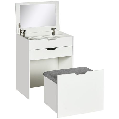 Includes flip-up mirror, padded stool, drawer, and under-seat compartment – everything you need in one package -